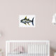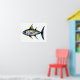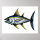 un artisanat décoratif d'un gros thon aux nageoires jaunes et bleues qui longe le bord. un grand design pour les amateurs de fruits de mer et de pêche.