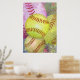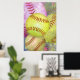 L'impression de softball féminin de katz_d_zynes présente un design de softball féminin brillant avec une touche florale avec des softballs rose et jaune vif :: : cette affiche est également disponible avec le nom personnalisable et le numéro de maillot - voir la katz_d_zynes "Collection de Softball des filles grungy" ci-dessous ...