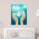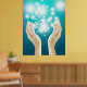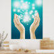 Poster Guérir les mains sur l'arrière - plan vert chakra