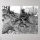 Un soldat américain est assis au milieu d'une position chinoise abandonnée.