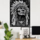 Un guerrier amérindien avec une coiffure en plumes sur un arrière - plan noir