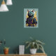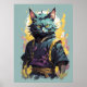 Poster Guerrier Chat Ninja Éclaboussure de Feu Gris Cool