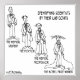 "Identifier les scientifiques à l'aide de leurs manteaux de laboratoire. "L'Étudiant Médicale", "Le Docteur", "Le Professeur Médicale" et "Le Lauréat du Prix Nobel". Chacun a un manteau plus long ; le gagnant du prix est un véritable train.