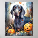 Poster Halloween Bluetick Coonhound avec la peur Citrouil