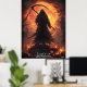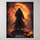 Debout devant une lune d'orange sanguine, le moissonneur de minuit émerge enveloppé d'ombres et de fumée, brandissant une escroquerie issue d'une peur ancienne. Entourée de citrouilles hantés et de ruines brûlées, cette redoutable Faucheuse veille en silence, une sentinelle de l'heure la plus sombre d'Halloween. Un hommage glaçant à l'esprit des nuits sombres et des âmes oubliées.