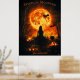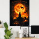 Poster Halloween de sorcière avec Pleine lune, bougies et