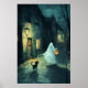 Poster Halloween Fantôme et chat Tricot ou traitement