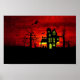 Poster Halloween Maison hantée Éffrayante sorcière effray