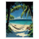 Une scène de plage tropicale tranquille, avec un hamac tendu entre deux palmiers balançoires, avec l'océan en pente douce au bord de l'eau. L'eau turquoise et claire s'étend à l'horizon, invitant à la détente. Des feuilles de palmiers verts se déplacent doucement dans la brise, tandis que des coquillages épars reposent sur le sable chaud. Ce cadre idyllique saisit l'essence du calme, offrant une escapade parfaite dans l'étreinte paisible de la nature.