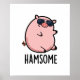 Hamsome Funny Pig Pun présente un cochon mignon qui a l'air vraiment cool et beau dans ses lunettes de soleil. Un cadeau de jeu de mots parfait pour la famille et les amis qui aiment les puns de cochon mignons.