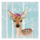 Poster Happy Animal avec Fleurs en Forêt Bleue-Cerf