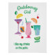 Belle affiche murale à thème "Glamper". Créé avec une image de cocktails colorés et fruités et inscrit avec le texte "Fille en plein air- J'aime mes boissons sur le patio." Le texte est modifiable. Voir d'autres articles de cette même collection sur Zazzle.
