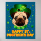 Poster Happy St Patricks Pugtricks Day Irish Pug Leprecha