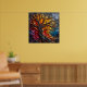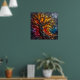Portrait abstrait d'un arbre desséché contre un arrière - plan gris moyen texturé. Les racines, le tronc et les branches s'étendent dans des directions opposées, imprégnées de couleurs vives : rouge sang, bordeaux, bleu, turquoise, orange et jaune. Les lignes Abstraites en or et en brun foncé créent une composition artistique et engageante, capturant la beauté dans la décomposition.