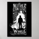Une prophétie effrayante qui relie le Dark Lord Voldermort à notre héroïque Harry Potter. 'Ni ne peuvent vivre pendant que les autres survivent' ' une révélation effrayante illustrée dans une silhouette ombragée avec ces célèbres personnages de livres pour enfants. Un spectacle cool et sombre d'arrière - plans avec le pouvoir magique de donner vie à cette citation de Harry Potter avec les sorcières et les sorciers qui l'ont inspirée.