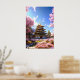 Voici un temple japonais imposant, fier et serein, qui vous invite à explorer ses lieux sacrés. Ses murs massifs offrent un cadre tranquille pour un jardin à couper le souffle qui respire la vie et la vitalité. Admirez les douces ondulations de l'étang serein, frangé par une pelouse verdoyante et une tapisserie de fleurs jaunes et roses vibrantes.