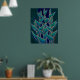 Poster présentant des illustrations florales, version "Heliconia Rostrata", fleurs tropicales exotiques aux couleurs crépitées - noir, bleu marine, turquoise et gouttes de jaune. Art numérique, croquis dessinés à la main et quelques manipulations numériques, 2017. © Julia Khoroshikh www.juliakhoroshikh.art #heliconia #tropicalflowers #floralart #floralgraphic #floralposters #posters #wallart #zazzlemade
