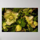 Cette affiche photographique d'art met en vedette de jolies fleurs d'ailes blanches, dorées, jaunes et roses entourées de feuillage vert pour former une impression vintage et antique. Également connue sous le nom de Rose de Noël et de Rose de Carême, cette à feuillage persistant fleur vivace est l'un des premiers plantes à fleurir dans le jardin du printemps.