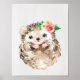 Poster Hérisson Bébé Fleur Aquarelle, Animaux de la Forêt
