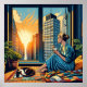 Poster Heure du matin dans la ville | Une femme qui réflé