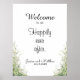 Cette Happily Ever After Dusty Sage Green Flowers Wedding Réception Affiche de bienvenue avec une élégante calligraphie peut être facilement personnalisée pour votre événement très spécial!