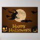 "HAPPY HALLOWEEN" VOL WITCH, BATS, PLEINE LUNE ET JACK-O-LANTERN CITROUILLES