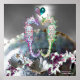 Élégant, coloré et vibrant rose, fuchsia, bleu vert mère de perle et hippocampes amoureux Originaux .Graphiques numériques par Bulgan Lumini (c)