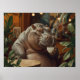 Poster Hippo drinks coffee. Surreal style