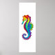 Artistiquement dessiné, lumineux, arc-en-ciel, cheval de mer polygonale sur arrière - plan blanc. Un tatouage brillant.
