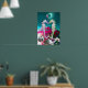 Poster HIPPOCAMPES AMOUREUX , ROSE TURQUOISE BLEU Nacre