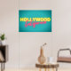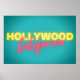 Style typographique vintage caractéristiques "Hollywood, Californie" en or et rose néon texte sur vieilles / rétro aqua arrière - plan