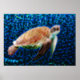 Poster Honu à la tortue verte sur l'art fractal bleu