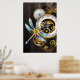 Cadran d'antiquités avec or et lances en laiton, décoré de libellules mécaniques sur arrière - plan brun rayé. Steampunk.