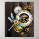 Cadran d'antiquités avec or et lances en laiton, décoré de libellules mécaniques sur arrière - plan brun rayé. Steampunk.