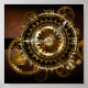 Montres anciennes et fantastiques avec des engrenages dorés et laiton sur un arrière - plan brun et rouillé. Style Steampunk.