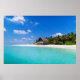 La maison sur la plage de sable tropicale. Que voudriez-vous vivre ici ! Palmiers d'île, eau tropicale bleue, plages de sable blanc et doux, le tout sous un ciel bleu ensoleillé. J'appellerais cette plage d'île tropicale comme chez moi n'importe quand !