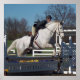 Chasseur blanc cheval et cavalier sautant un boeuf.
