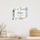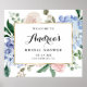 Accueillez vos invités avec ce panneau de bienvenue personnalisable élégant pour la fête de mariage. Il présente des hydrangeas bleus aquarelle, des pivoines pastel, des feuilles d'eucalyptus, de la verdure et un cadre en feuille d'or faux. Personnalisez ce panneau de bienvenue botanique en ajoutant les détails de votre événement. Ce panneau de bienvenue floral est parfait pour les fêtes de mariage printanières et hivernales.