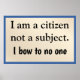 I am a citizen, not a subject. I bow to no king. I am of the United States of America, founded on the principle of Government of the People, by the People, for the People. The Constitution of the United States of America provides the blueprint for the behavior of those we choose to lead this great country. Those elected to office or serving us in the government take an oath "I will to the best of my ability, preserve, protect and defend the Constitution of the United States." When they break that oath it is our right and our duty to hold them to account for that failure.