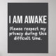 Poster I Am Awake Please Respect My Privacy Funny Sarcast