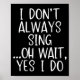 Poster I Don't Always Sing Oh Yes I Do Funny Singing Sing