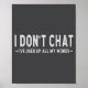 Poster I Don't Chat I've Used Up All My Words Slogan