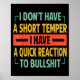 Poster I Don't Have A Short Temper - Quick Reaction To Bu