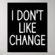 Poster I Don't Like Change, Funny, Jokes, Sarcastic Sayin