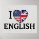 Express your love for the English language with this unique design. It features a heart shape split between the American stars and stripes and the British Union Jack, symbolizing the global reach of English. The bold text "I ❤️ ENGLISH" makes it a perfect statement piece for language learners, teachers, travelers, and Anglophiles alike.