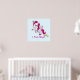 Une affiche avec un dicton amusant : Je fais tomber la magie. Conçu avec une licorne ailée blanche avec crinière rose, queue et sabots. La corne a des anneaux de couleur arc-en-ciel et ressemble à une sucrerie. Cette mignonne licorne s'élève sur ses pattes arrières. Coeur rose doux sur sa joue et de longs cils girly. Un arc-en-ciel à côté du mot magie.