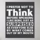 I Prefer Not To Think Before Speaking Funny Adult Humor