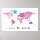 Élégant texte basé sur l'Écriture Christian monde evangelism imprimer. Cette belle carte du monde multicolore aquarelle avec une bordure rose douce présente la déclaration biblique d'Isaïe 6:8 dans un élégant design de typographie calligraphique, "Me voici, envoie-moi."