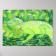 Cet iguane rayé vert frappant est assis sur une branche d'arbre très détaillée contre un arrière - plan de nombreux feuilles de jungle verdoyante dans cette image vert monochromatique intrigante.