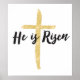 Célébrez la résurrection de Jésus avec cette élégante conception de typographie de brush avec des mots en noir, qui déclare, "Il est ressuscité." L'Arrière - plan est une croix dessinée à la main en feuille d'or (numériquement rendu). La référence biblique est de Matthieu 28:6.
